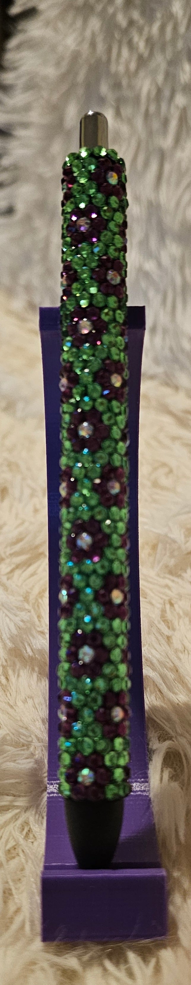 Ink Joy pen with light green background, purple flowers